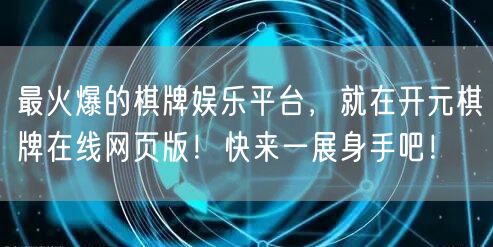 最火爆的棋牌娱乐平台,就在开元棋牌在线网页版!快来一展身手吧!